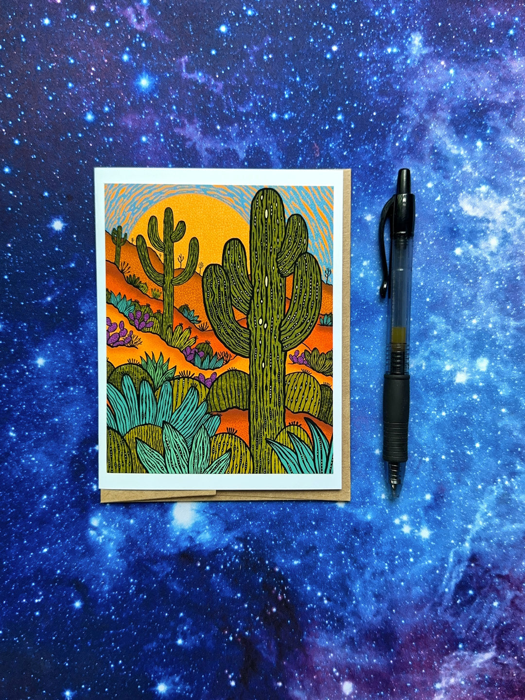 Say hello with color! All of our cards are printed using the same high-quality printing as our art prints and applied to a hand-folded cardstock base. The inside of every card is blank, so you have plenty of room to get your message across!